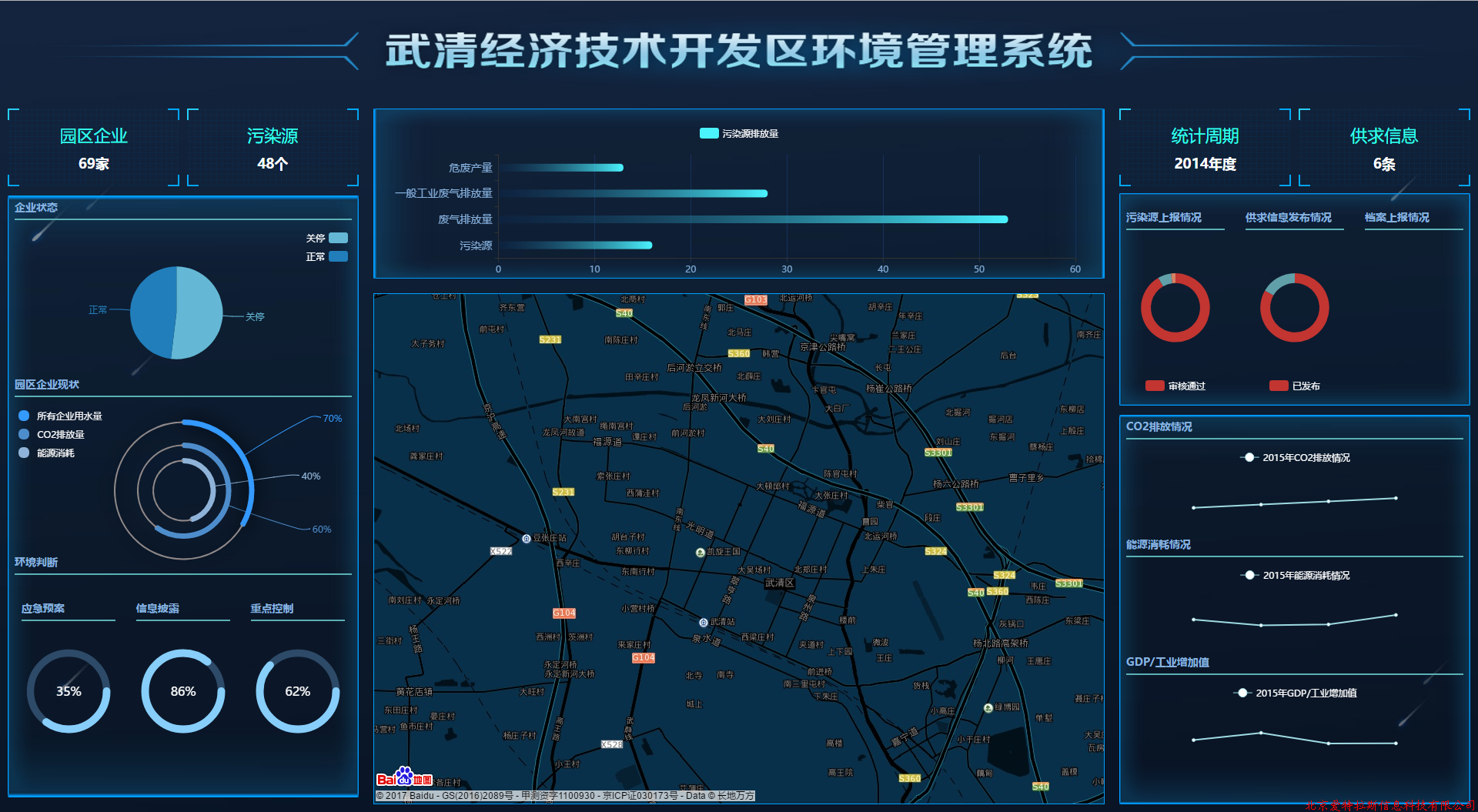武清經(jīng)濟技術(shù)開發(fā)區(qū)環(huán)境管理系統(tǒng)是環(huán)境管理系統(tǒng)和數(shù)據(jù)展示系統(tǒng),是以數(shù)據(jù)整理展示為基礎(chǔ)的在線平臺,系統(tǒng)平臺包括門戶網(wǎng)站、企業(yè)用戶中心、后臺管理系統(tǒng)、環(huán)境管理系統(tǒng)、大屏數(shù)據(jù)可視化等模塊功能以及6個月期限的維護服務。此平臺通過數(shù)據(jù)上報和供需發(fā)布,提升園區(qū)生態(tài)環(huán)境管理與園區(qū)環(huán)境信息公開與信息互勵水平,加強了園區(qū)企業(yè)監(jiān)管,確保環(huán)境經(jīng)濟共同發(fā)展,使園區(qū)和諧發(fā)展,武清經(jīng)濟技術(shù)開發(fā)區(qū)環(huán)境管理系統(tǒng)的完成,對天津市的數(shù)據(jù)信息管理有著重要的作用。