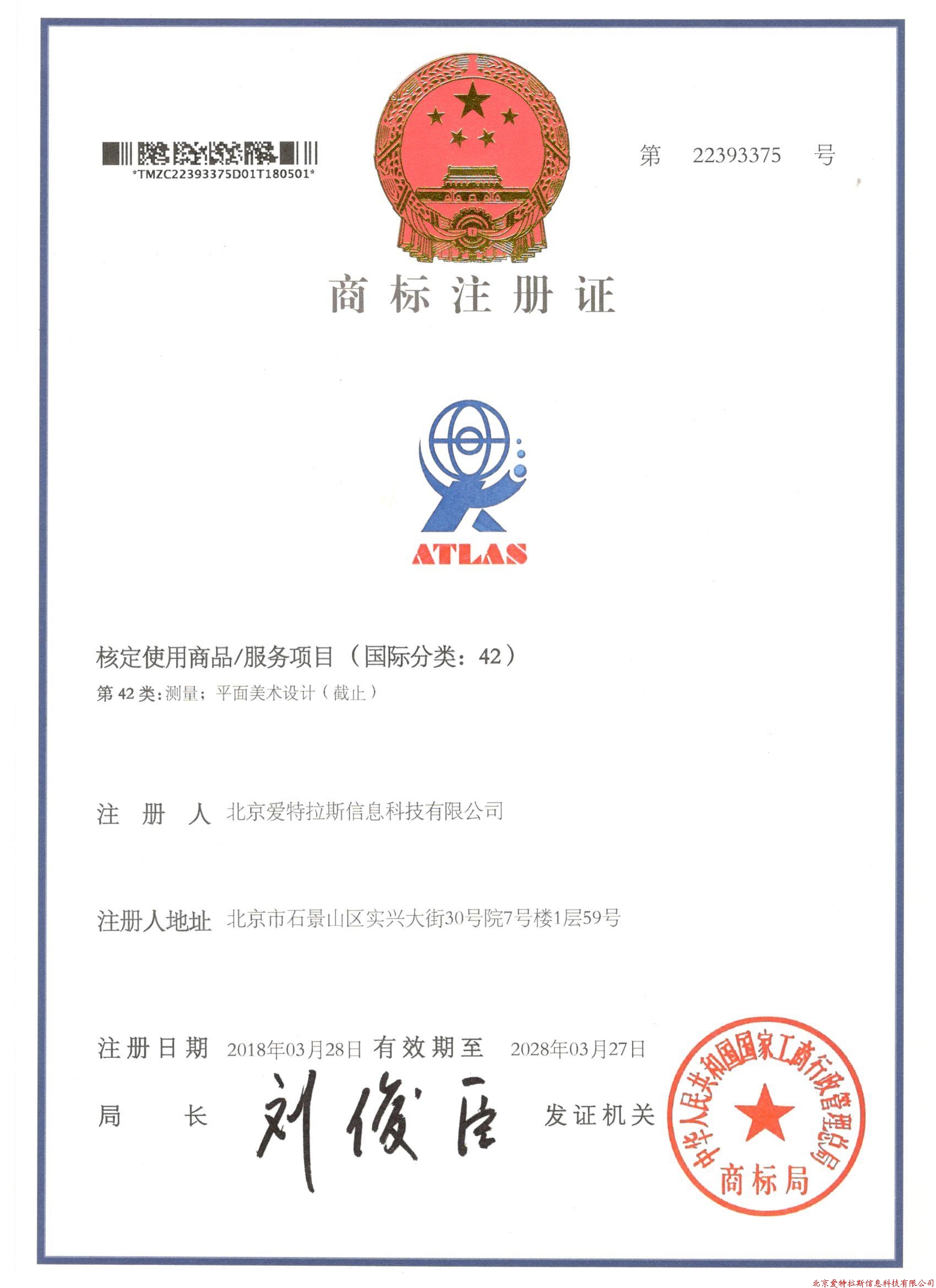”商標(biāo),經(jīng)過上級工商行政管理部門的初審核準(zhǔn)、公告等程序,正式獲得由國家工商行政管理總局商標(biāo)局頒發(fā)的商標(biāo)注冊證書。這是愛特拉斯品牌建設(shè)的重要里程碑,也凝聚著全體愛特拉斯人員的智慧和勞動,體現(xiàn)著公司的經(jīng)營成果。