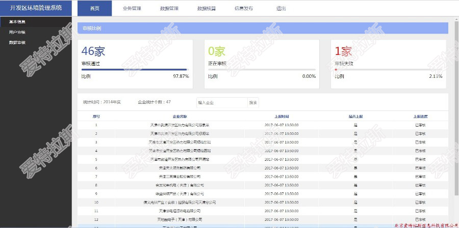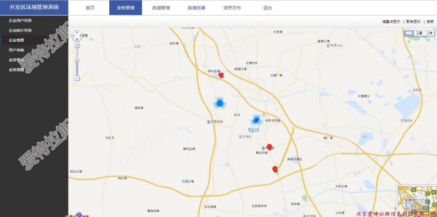 北京愛特拉斯信息科技有限公司,針對管理部門、園區(qū)企業(yè)、社會公眾三個不同的角色,開發(fā)了三套頁面: