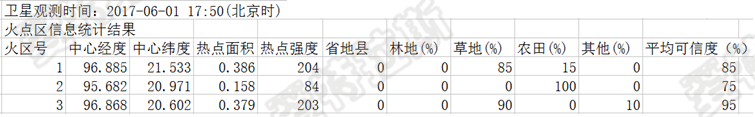利用高頻次氣象衛(wèi)星進行火點判識,主要是遙感分析的手段判識火點像元的經(jīng)緯度、所在位置的行政區(qū)劃、土地利用類型、火點判識的可信度(火點、可能火點、云區(qū)火點等)等。