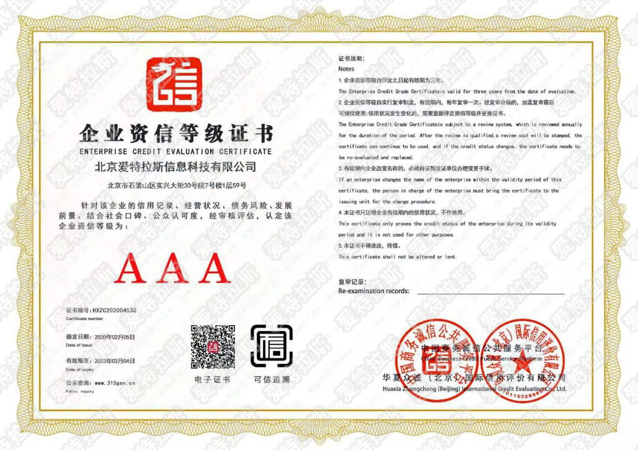 我司在服務(wù)守信、質(zhì)量守信、合同守信等方面一直秉承著嚴(yán)律己身的精神,盡職盡責(zé)的服務(wù)于廣大客戶,而此次3A體系認證的通過就是廣大客戶對我司實力以及信譽上的一種認可,也是我司在服務(wù)之路上的一種重大收獲,我司也會一直懷抱著不驕不躁的態(tài)度,將這種良好精神保持下去。