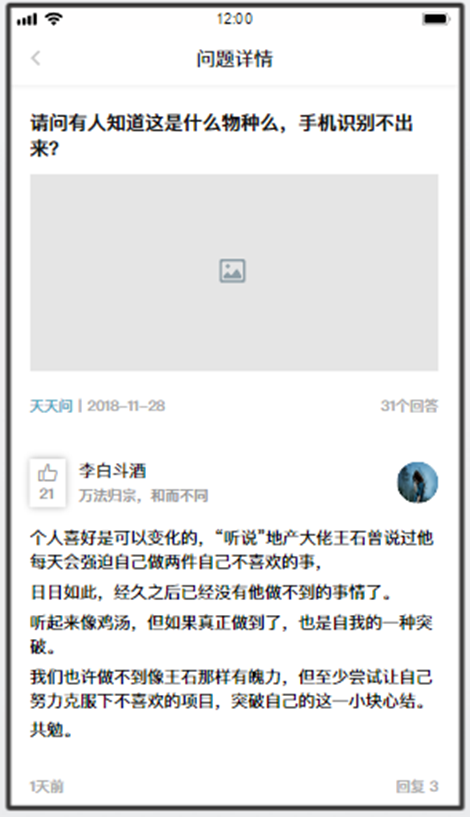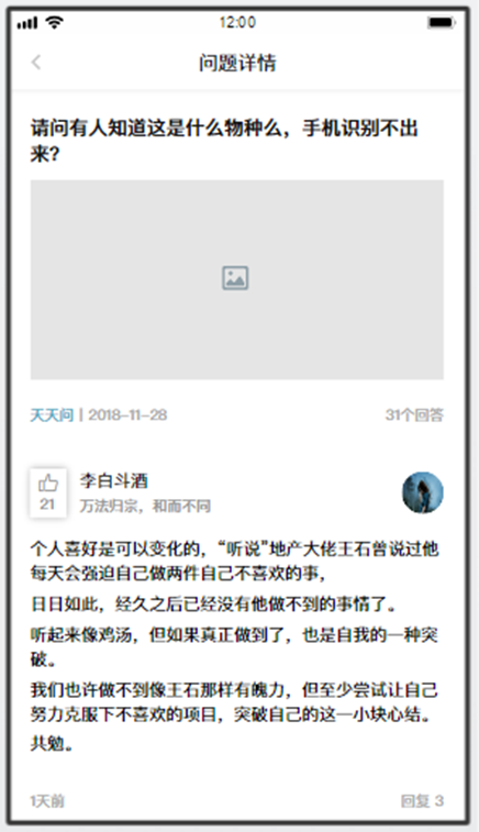 所有用戶所提問題的列表,點(diǎn)擊其中一條,進(jìn)入到問題詳情。