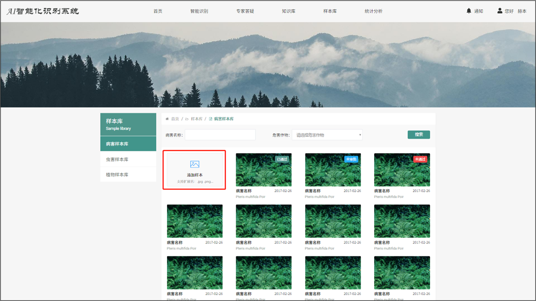 在病害、蟲害、植物樣本庫中點(diǎn)擊添加樣本。