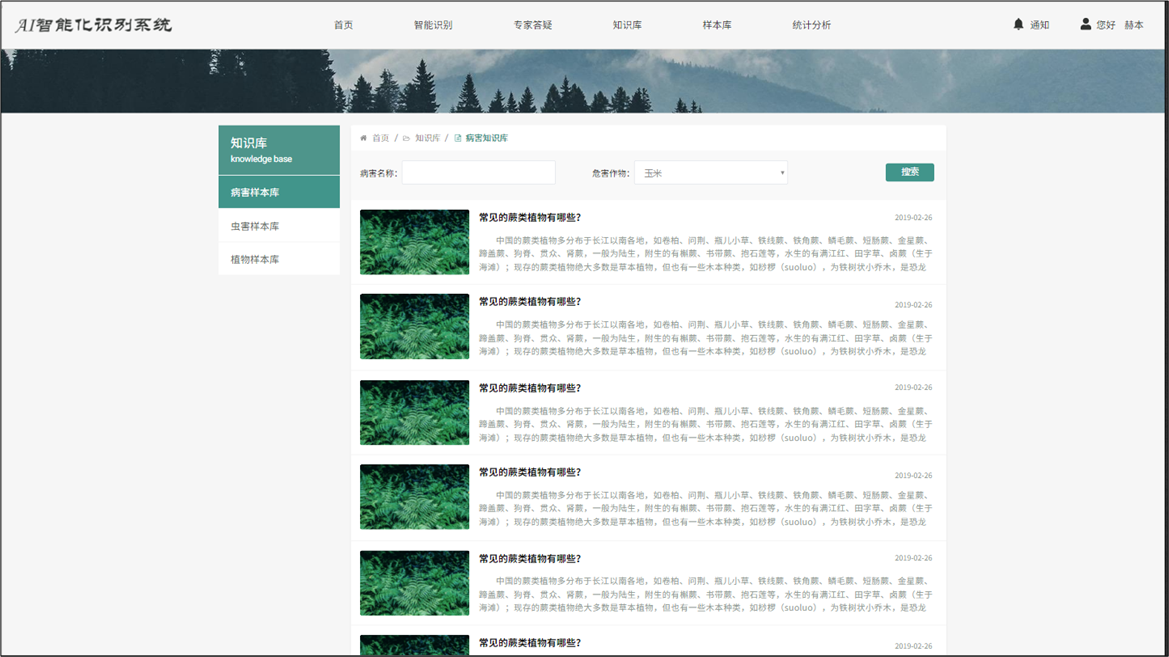 點(diǎn)擊蟲害庫/病害庫快捷入口,跳轉(zhuǎn)到蟲害庫/病害庫一級(jí)界面。