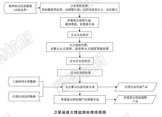 遙感火點識別的基本原理就是運用遙感衛(wèi)星對地球表面進(jìn)行掃描,通過衛(wèi)星地面站把掃描信息接收下來,再利用計算機對這些信息進(jìn)行處理,識別出紅外熱點,結(jié)合地理信息系統(tǒng)對熱點進(jìn)行定位,根據(jù)植被信息對熱點類型進(jìn)行初步判讀,從而實現(xiàn)對森林火災(zāi)的衛(wèi)星監(jiān)控。