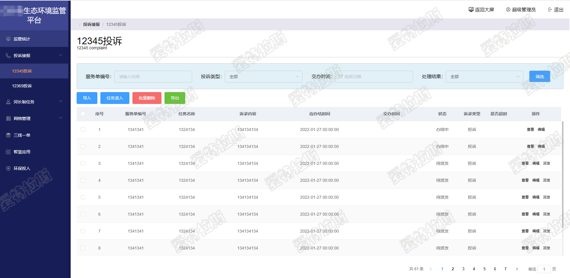 環(huán)境監(jiān)管-投訴接報-12345投訴
