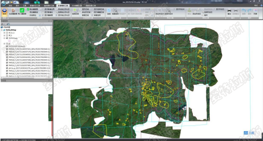 6.鑲嵌勻色:解決接邊、勻色、鑲嵌線編輯、“替云”等。實(shí)時(shí)羽化、支持超大圖像數(shù)據(jù)、提供自動(dòng)勻色與人工調(diào)色(PS功能)、區(qū)域變形糾正;可同時(shí)提供多種分辨率的數(shù)據(jù)鑲嵌;