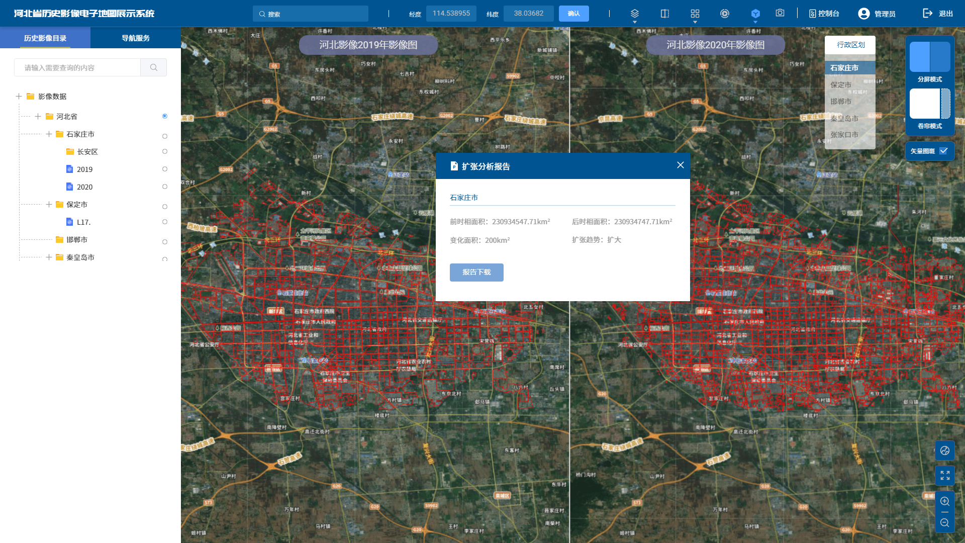 《河北省基礎測繪十四五規(guī)劃》中提出了“強化基礎測繪保障能力”、“提升地理信息公共服務能力”、“提升基礎測繪裝備水平和科技創(chuàng)新能力”等三大任務15項重點工程。2022年4月,北京愛特拉斯信息科技有限公司與河北省第二測繪院啟動了基于“天地圖”的河北省歷史遙感影像開放(第一期)項目建設工作。我司自主研發(fā)的“河北省歷史影像電子地圖展示系統(tǒng)”對河北省全省范圍內2016年至2020年的歷史遙感影像資料進行收集、分析、處理與融合,將河北省范圍內的歷史影像數(shù)據(jù)發(fā)布為地圖服務。本系統(tǒng)創(chuàng)新采用了動態(tài)切片技術和歷史遙感影像智能解譯技術,實現(xiàn)了地圖展示、圖層控制、卷簾對比、分屏對比、注記服務、地名地址查詢服務、路線導航等功能,供各級用戶使用;展示了河北省“十三五”期間地表變化情況,實現(xiàn)了歷史追溯與時空演變分析,進一步消除信息孤島,為城市歷史變遷分析、地表變化監(jiān)測提供了詳實可靠的服務。本項目于2022年12月順利通過了專家驗收。