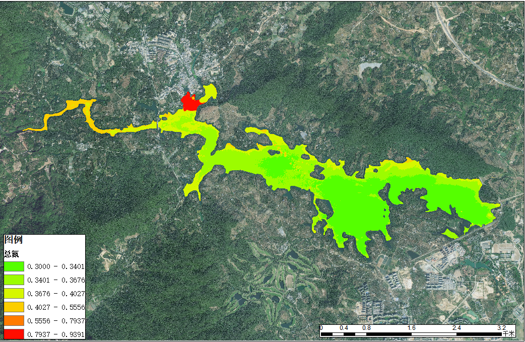 氨氮濃度分布專題圖與遙感影像疊加圖