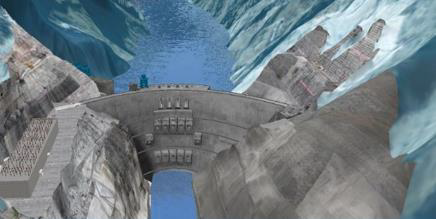 產(chǎn)品支持將 BIM 數(shù)據(jù)與地形數(shù)據(jù)進(jìn)行融合。在將 BIM 數(shù)據(jù)與三維地形數(shù)據(jù)進(jìn)行融合時,通過 TIN 地形和傾斜攝影模型的裁剪、挖洞、鑲嵌,布爾運(yùn)算以及表面運(yùn)算等功能可方便的實(shí)現(xiàn) BIM 嵌入地形、嵌入傾斜攝影模型、 傾斜攝影模型嵌入地形等效果。將 BIM 數(shù)據(jù)與地形數(shù)據(jù)進(jìn)行融合,BIM 提供了微觀的數(shù)據(jù)信息,地形數(shù)據(jù) 提供 BIM 模型在宏觀環(huán)境中的位置信息及周邊環(huán)境。通過多源信息的融合,為用戶提供更加真實(shí)、準(zhǔn)確的可視化體驗(yàn),以及三維空間分析數(shù)據(jù)支撐,如在下圖中,將水電站的 BIM 模型與三維地形數(shù)據(jù)相融合,為水電企業(yè)提供建設(shè)、運(yùn)營、管理階段數(shù)據(jù)的支持。