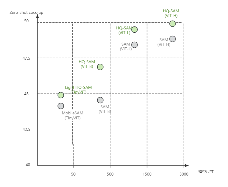 SAM變體的全面性能、模型大小和速度比較: