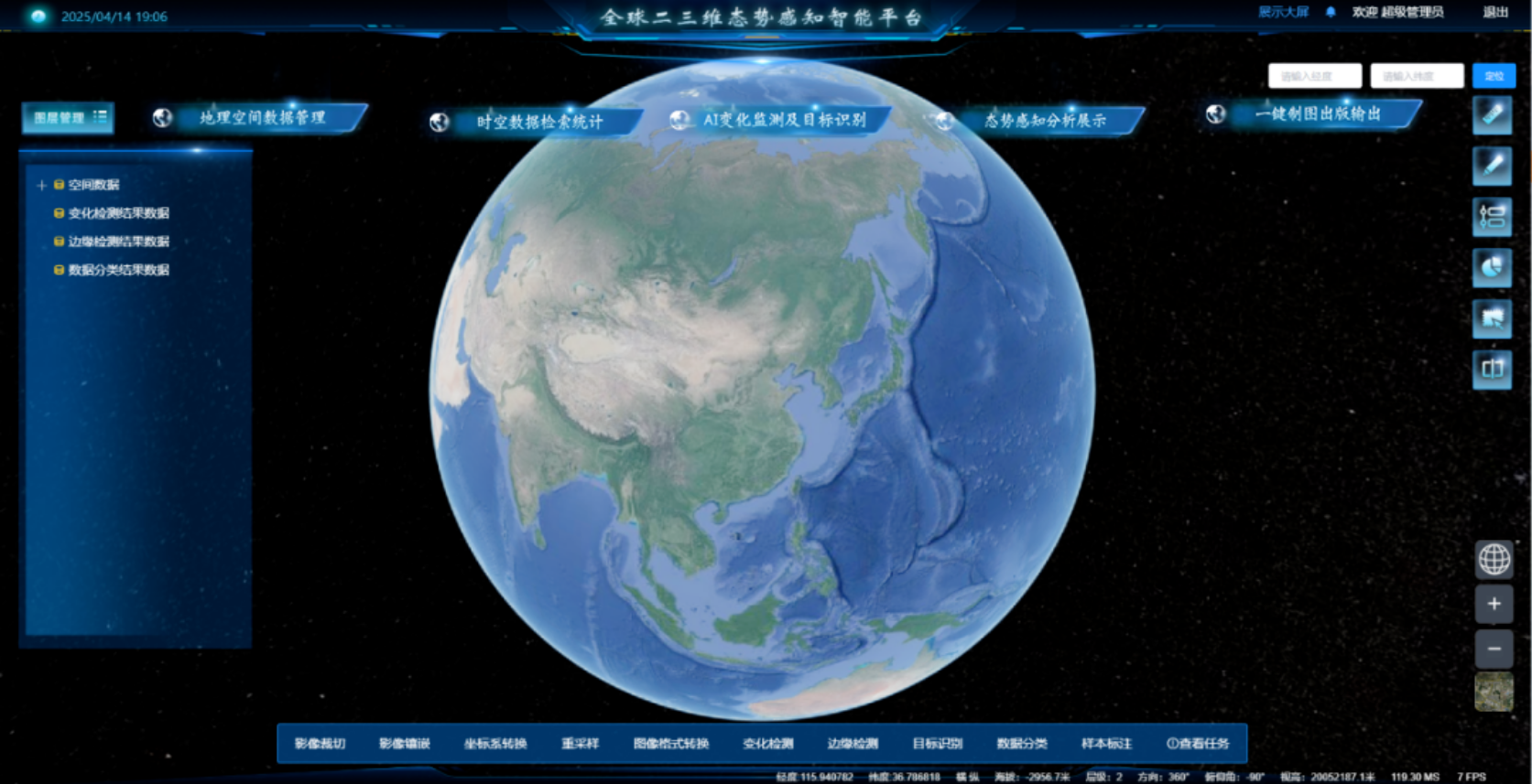 綜合利用衛(wèi)星遙感、地理空間數(shù)據(jù)、云計算、人工智能及大數(shù)據(jù)分析等技術(shù),并結(jié)合多源異構(gòu)數(shù)據(jù)建模技術(shù)、海量數(shù)據(jù)快速自動入庫技術(shù)、基于空間數(shù)據(jù)引擎技術(shù)有效整合數(shù)據(jù)資源,實現(xiàn)全球態(tài)勢感知智能化應(yīng)用系統(tǒng)。